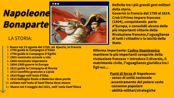 Punti di forza di Napoleone: - senso di unità nazionale -accentramento del potere vasto consenso popolare - abilità militari/strategiche