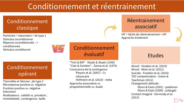"Tom & Bill" - Staats & Staats (1958) "Clair & Sombre" - Zanna et al. (1970) Conscience de la contingencePleyers et al. (2007) - Cs nécessaire Hofmann et al. (2010) - métaApproche associative vs. propositionnelle vs. duale