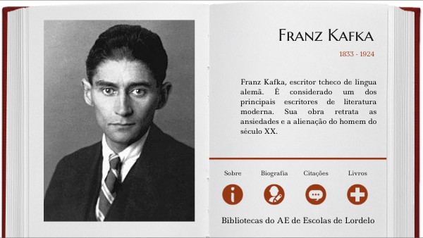 Franz Kafka nasceu em 1883, em Praga, no seio de uma família da pequena burguesia judia de expressão alemã. Começou a escrever os seus primeiros textos em 1904. Em 1906, terminou os seus estudos universitários, doutorando-se em Direito. Em vida, publicou apenas sete pequenos livros e alguns textos em revistas. De entre estes livrinhos e textos, destaca-se A Metamorfose, que veio a lume em 1915. Esta pequena novela viria a afirmar-se como uma das suas obras de referência. A 3 de junho de 1924, não resistindo à tuberculose diagnosticada em 1917, morre em Kierling, a poucos quilómetros de Viena, deixando três romances fragmentários, que seriam publicados postumamente pelo seu amigo e testamenteiro Max Brod: O Processo (1925), O Castelo (1926) e América (1927), a que se seguiram volumes com contos, cartas e diários. A sua obra, centrada no homem solitário moderno, refém de uma vida absurda, tornar-se-ia uma das mais influentes do mundo literário do século xx.