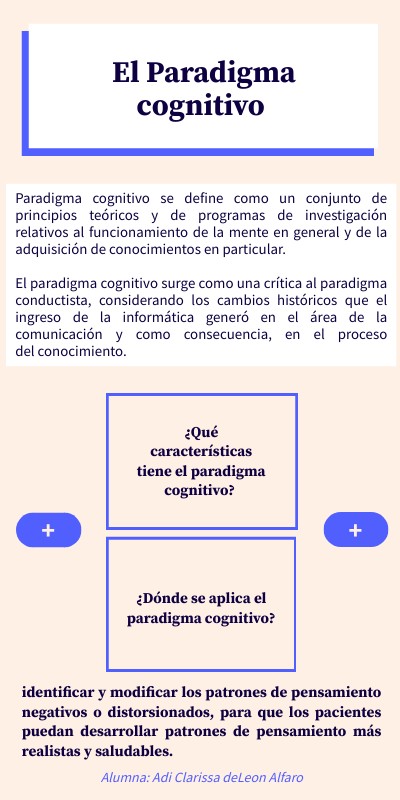 Paradigma cognitivo se define como un conjunto de principios teóricos y de programas de investigación relativos al funcionamiento de la mente en general y de la adquisición de conocimientos en particular. El paradigma cognitivo surge como una crítica al paradigma conductista, considerando los cambios históricos que el ingreso de la informática generó en el área de la comunicación y como consecuencia, en el proceso del conocimiento.