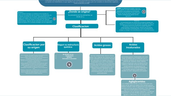 Ácidos grasos: Son las unidades básicas de los lípidos, consisten en una cadena de átomos de carbono con un grupo carboxilo en un extremo. Pueden ser saturados o insaturados, dependiendo de si contienen o no dobles enlaces.