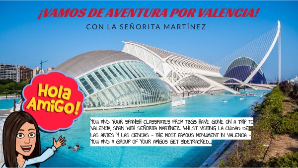 You and your spanish classmates from tbgs have gone on a trip to valencia, Spain with señorita martínez. whilst visiting la ciudad de las artes y las ciencias - the most famous monument in valencia - you and a group of your amigos get sidetracked...
