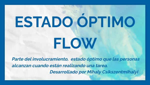 Parte del involucramiento, estado óptimo que las personas alcanzan cuando están realizando una tarea. Desarrollado por Mihaly Csikszentmihalyi