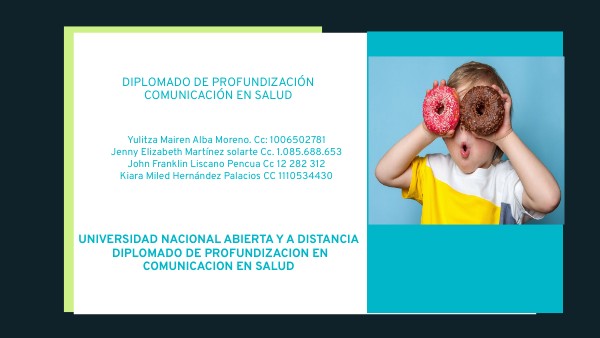 Audor G; M. H;; Lerma C; P. R. y Roldan G; E. (2022). Beneficios del ejercicio físico en niños y niñas con sobrepeso y obesidad en Neiva -Huila, Colombia. Revista médica Risaralda [online]. 2022, vol.28, n.1, pp.6-11. Epub July 05, 2022. ISSN 0122-0667. https://doi.org/10.22517/25395203.24924 Delgado P. (2019). La teoría del aprendizaje social: ¿qué es y cómo surgió?. https://observatorio.tec.mx/edu-news/teoria-del-aprendizaje-social/ Gee, J.-P., & Esteban-Guitart, M. (2019). El diseño para el aprendizaje profundo en los medios de comunicación sociales y digitales. Comunicar, 27(58), 9–18. https://doi-org.bibliotecavirtual.unad.edu.co/10.3916/C58-2019-01 Gobernación del Huila. (2022). Huilenses, a moverse y a mejorar hábitos alimenticios para combatir la obesidad.http://www.scielo.org.co/scielo.php?script=sci_arttext&pid=S0122-06672022000100006#:~:text=En%20el%20departamento%20del%20Huila,21%2C7%25%2C%20respectivamente