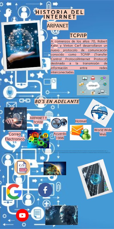 A comienzos de los años 70, Robert Kahn y Vinton Cerf desarrollaron un nuevo protocolo de comunicación conocido como TCP/IP (Transfer Control Protocol/Internet Protocol) destinado a la transmisión de información entre redes interconectadas.