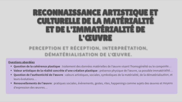 reconnaissance artistique et culturelle de la matérialité et de l'immatérialité de l'œuvre