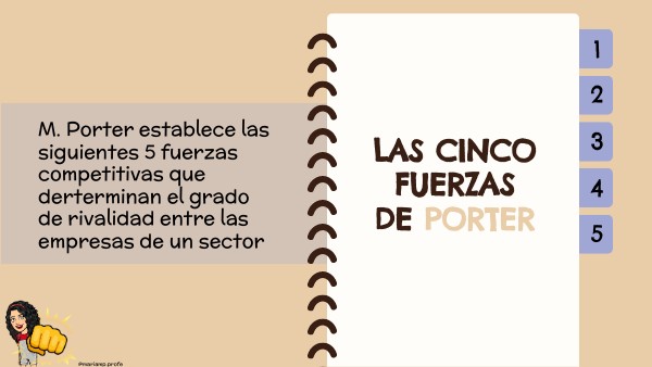 M. Porter establece las siguientes 5 fuerzas competitivas que derterminan el grado de rivalidad entre las empresas de un sector