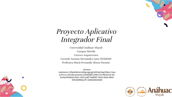 Universidad Anáhuac Mayab Campus Mérida Carrera Arquitectura Gerardo Antonio Hernández Lanz 00368369 Profesora María Fernanda Alonso Paramo