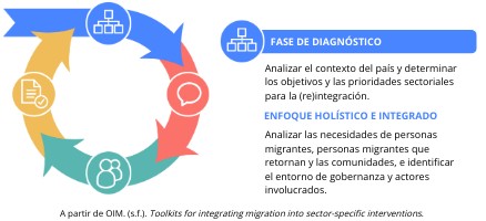 A partir de OIM. (s.f.). Toolkits for integrating migration into sector-specific interventions.
