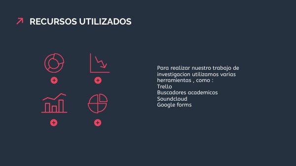 Para realizar nuestro trabajo de investigacion utilizamos varias herramientas , como : Trello Buscadores academicos Soundcloud Google forms
