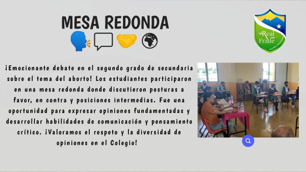 ¡Emocionante debate en el segundo grado de secundaria sobre el tema del aborto! Los estudiantes participaron en una mesa redonda donde discutieron posturas a favor, en contra y posiciones intermedias. Fue una oportunidad para expresar opiniones fundamentadas y desarrollar habilidades de comunicación y pensamiento crítico. ¡Valoramos el respeto y la diversidad de opiniones en el Colegio!