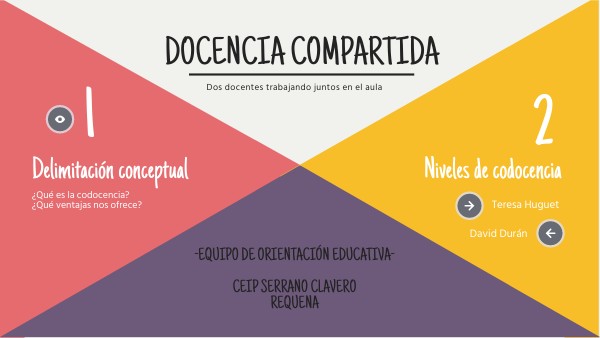 La docencia compartida es la relación entre dos docentes que comparten de manera mutua la RESPONSABILIDAD DE PLANIFICAR, EJECUTAR Y la enseñanza a un grupo heterógeneo de estudiantes
