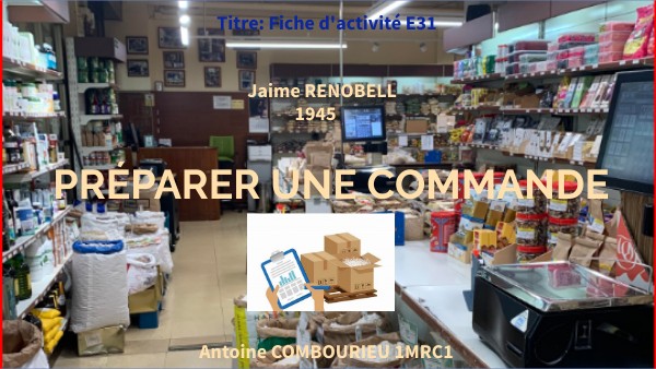 L'objectif de cette activité était de respecter la fiche avec le nom des produits et les quantités qu'il faut mettre, ainsi que les sacs auxquels il fallait mettre les produits. Cette commande était pour deux clients, un boulanger et un restaurateur. Véronique m'a confié cette mission avec la fiche qui indique le nom des produits, combien il en faut et avec quel sac dans lequel il faut mettre tous les produits.