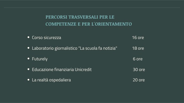 PERCORSI TRASVERSALI PER LE COMPETENZE E PER L'ORIENTAMENTO