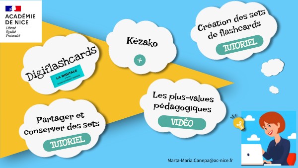 Il s'agit d'un outil gratuit et RGPD, proposé par la plateforme La Digitale. C'est l'équivalent de Quizlet, mais RGPD et gratuit!Il permet la création de sets de flashcards numériques, en intégrant texte et/ou image et/ou audio. La création d'au moins 5 cartes offre la possibilité à l'élève d'accéder à des activités de mémorisation (QCM ou écriture de la réponse en langue cible) avec une rétroaction immédiate. Les sets de cartes peuvent être partagés avec un lien internet et exportés sous forme de dossier compressé.