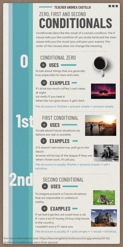 For more information visit: https://learnenglish.britishcouncil.org/grammar/b1-b2-grammar/conditionals-zero-first-second