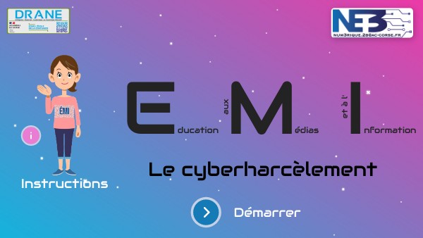 Bonjour , quel plaisir de se retrouver ! Tu te souviens, ensemble, nous abordons l'éducation aux médias et à l'information : c'est ce que l'on appelle l'EMI. Je te propose dans ce module des activités sur le cyberharcèlement.