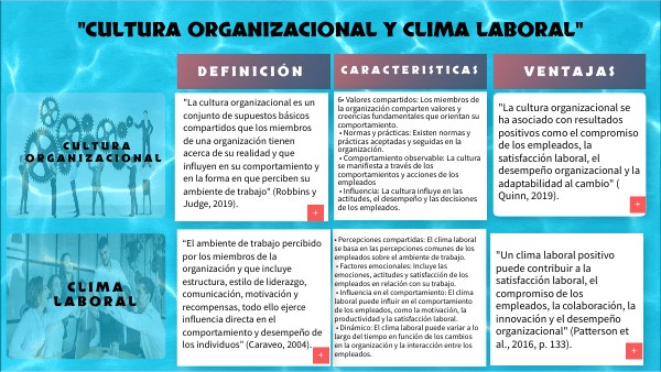 "La cultura organizacional se ha asociado con resultados positivos como el compromiso de los empleados, la satisfacción laboral, el desempeño organizacional y la adaptabilidad al cambio" ( Quinn, 2019).