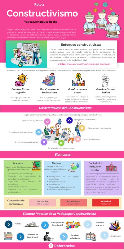 - Medina, V. M. (2023). Lección 3. Elementos de la Pedagogía Constructivista [Módulo en línea]. Universidad virtual del estado de Guanajuato. https://avalicmod19c.uveg.edu.mx/mod/scorm/player.php?a=6303¤torg=FPE_U1_L3_v02_ORG&scoid=13526