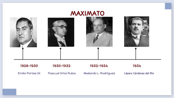 El Maximato fue un periodo histórico y político de México que abarco desde 1928, con el gobierno de Emilio Portes Gil como presidente interino del país hasta 1934 con el inicio del gobierno de Lázaro Cárdenas