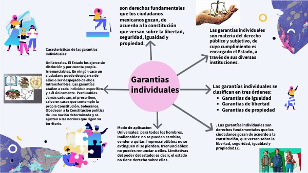 . Las garantías individuales son derechos fundamentales que los ciudadanos gozan de acuerdo a la constitución, que versan sobre la libertad, seguridad, igualdad y propiedad12.