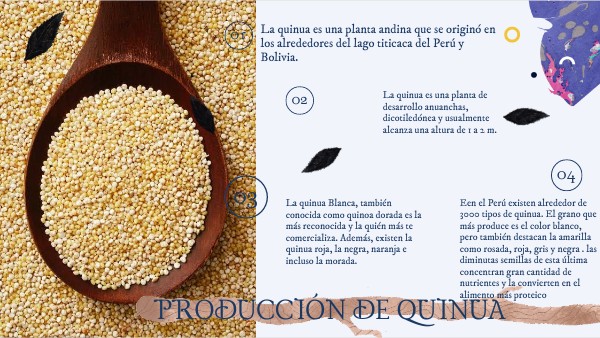 La quinua es una planta andina que se originó en los alrededores del lago titicaca del Perú y Bolivia.