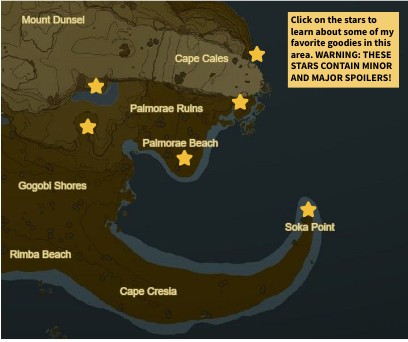 Click on the stars to learn about some of my favorite goodies in this area. WARNING: THESE STARS CONTAIN MINOR AND MAJOR SPOILERS!
