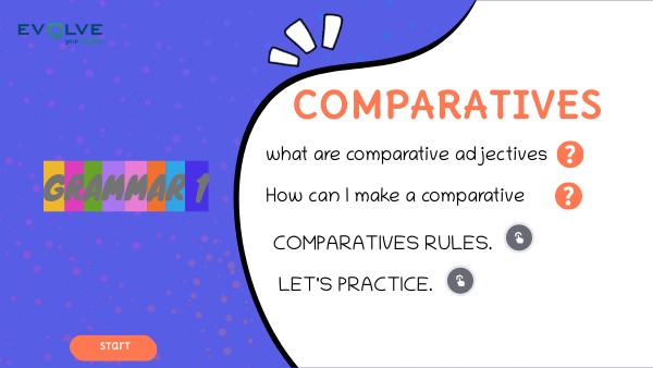 We use comparatives all the time, even though in the different languages applied for getting more information. To use comparatives we are going to use adjectives,that describe nouns and pronouns. And we only use two things or objects when we want to do a comparative sentence, so remember; only use two things to do a comparative. Comparative adjectives are used to compare one person or thing with another and also enable us to say whether a person or thing has more or less of a particular quality.