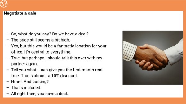 GOAL: to negotiate an agreement with a client for a service.