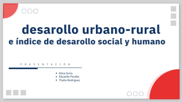 el desarollo urbano y rural nos habla de como las personas desarrollan un estilo de vida adecuada a donde viven. Por otro el indice de desarrolo social nos habla de la clasificación de los paises implementado por la UNDP.