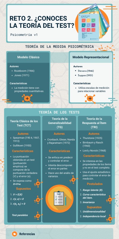 - Muñiz, J. (2010). LAS TEORÍAS DE LOS TESTS: TEORÍA CLÁSICA Y TEORÍA DE RESPUESTA A LOS ÍTEMS. Papeles del Psicólogo, 2010. Vol. 31(1), pp. 57-66.