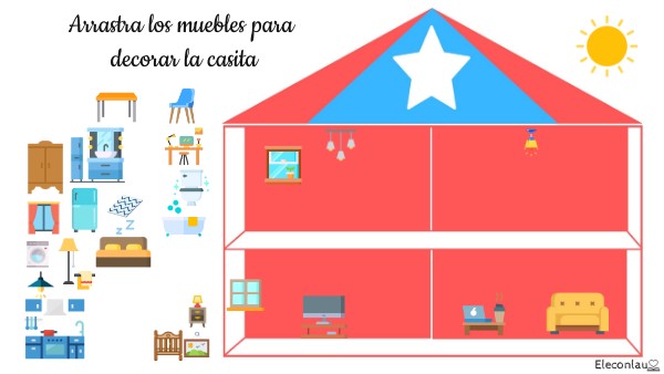 Arrastra los muebles para decorar la casita