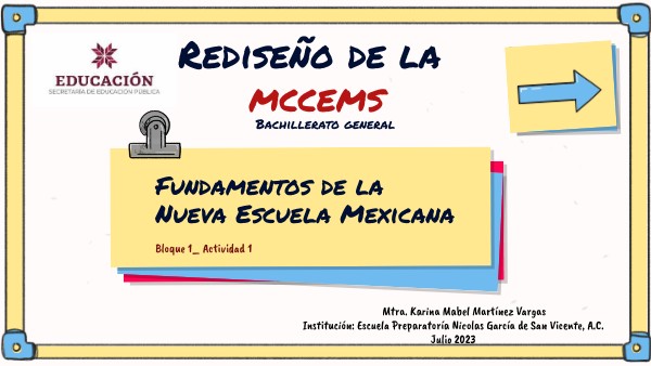 Mtra. Karina Mabel Martínez VargasInstitución: Escuela Preparatoría Nicolas García de San Vicente, A.C. Julio 2023