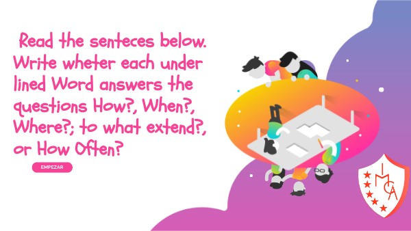 Read the senteces below. Write wheter each under lined Word answers the questions How?, When?, Where?; to what extend?, or How Often?