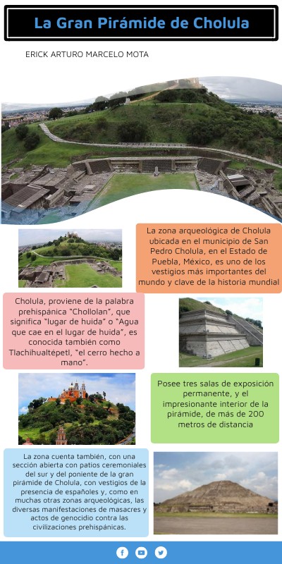 La zona arqueológica de Cholula ubicada en el municipio de San Pedro Cholula, en el Estado de Puebla, México, es uno de los vestigios más importantes del mundo y clave de la historia mundial