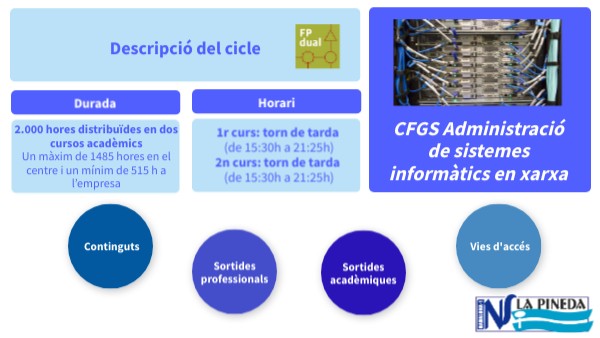 2.000 hores distribuïdes en dos cursos acadèmics Un màxim de 1485 hores en el centre i un mínim de 515 h a l’empresa