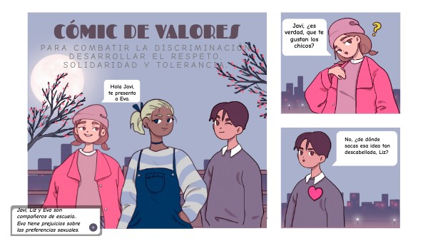 Javi, Liz y Eva son compañeros de escuela.. Eva tiene prejuicios sobre las preferencias sexuales.