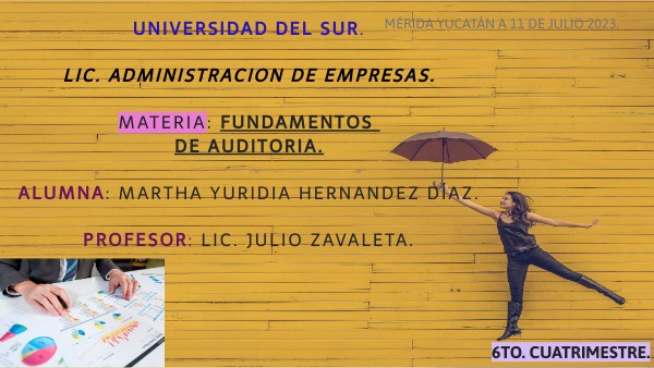 UNIVERSIDAD DEL SUR. LIC. ADMINISTRACION DE EMPRESAS. MATERIA: FUNDAMENTOS DE AUDITORIA. ALUMNA: MARTHA YURIDIA HERNANDEZ DÍAZ. PROFESOR: LIC. JULIO ZAVALETA.