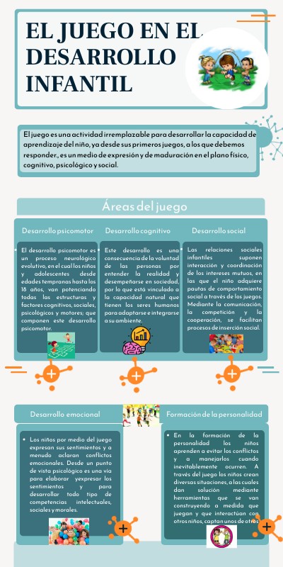 - A través del juego se desarrollan la motricidad gruesa y fina, las que incluyen la coordinación dinámica global, el equilibrio, la precisión de movimientos, la fuerza muscular y el control motor o la resistencia.