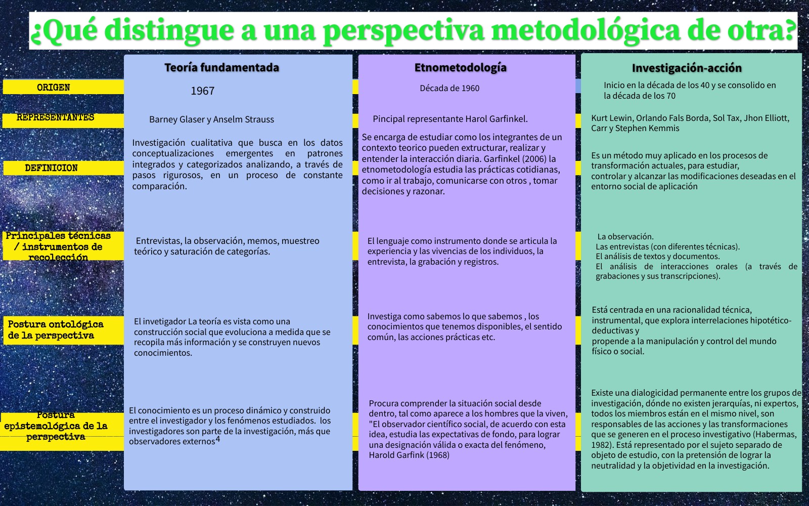 Se encarga de estudiar como los integrantes de un contexto teorico pueden extructurar, realizar y entender la interacción diaria. Garfinkel (2006) la etnometodología estudia las prácticas cotidianas, como ir al trabajo, comunicarse con otros , tomar decisiones y razonar.
