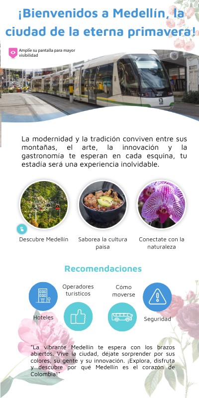 "La vibrante Medellín te espera con los brazos abiertos. Vive la ciudad, déjate sorprender por sus colores, su gente y su innovación. ¡Explora, disfruta y descubre por qué Medellín es el corazón de Colombia!"