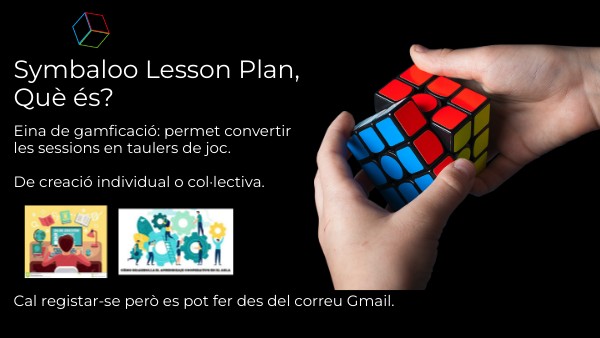 - He escollit presentar el recurs del Symbaloo Lesson Plan perquè serà un recurs que utilitzaré el proper a l'aula i hauré de presentar (dins del Pla d'estratègia digital) als companys. I també perquè encaixa en la dinàmica del curs al tractar-se d'una eina de gamificació. - He escollit fer la presentació amb Genially ja que és un recurs que no havia utilitzat mai i m'ha ofert la possibilitat d'investigar i jugar creant la presentació i he arriscat força crec afegint diferents elements de manera, per mi, coherent. He escollit aquest plantilla ja que el recurs Symbaloo és per gamificar i m'ha semblat molt adequat. És veritat que no segueix la pauta indicada per la professora del curs que ens va recomanar fer les transicions lliscant però m'ha semblat coherent amb el símil entre gamificar i el cub de Rubik. - No he col·locat àudio ja que m'ha semblat una presentació densa i afegir-hi àudio podia desviar l'atenció de la persona que interactua amb el recurs.