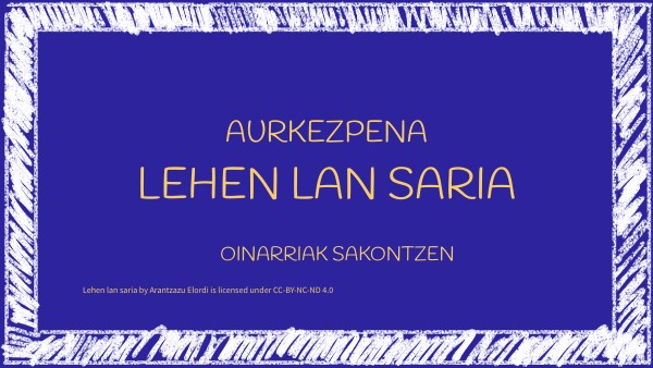 Lehen lan saria by Arantzazu Elordi is licensed under CC-BY-NC-ND 4.0