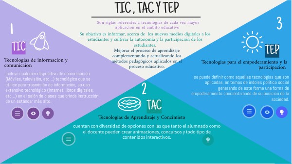 Infografia interactiva sobre las TICs, TACs y TEPs, el como se usan y de que trata cada una.