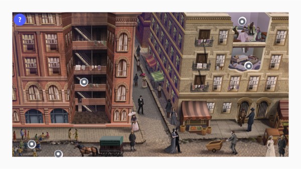 New York City, 1910. A typical street in a slum. The people who live here are hardworking, but their wages are extremely low. Escape from their nightmare of urban poverty - hard jobs, crowded housing, squalid streets - is all but impossible. Select the grey circles to learn more about how reformers of the Progressive Era hoped to help people like these lead better lives. Then answer the questions in your Google Doc.