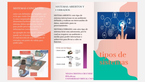 un sistema es un conjunto de elementos los cuales relacionados funcionan como un todo. Existen diferentes tipos de sistemas los cuales son: