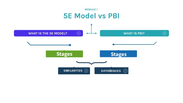 - In PBI, there's frequent reflection and continuous feedback during the beginning, middle, and end of the unit, while in the 5E, it might be assessed at the end of the unit.