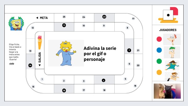 Elige ficha, tira el dado e intenta llegar a la meta antes que nadie. ¡Suerte!