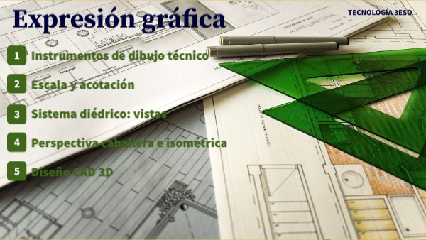Instrumentos de dibujo técnico Escala y acotación Sistema diédrico: vistas Perspectiva caballera e isométrica Diseño CAD 3D