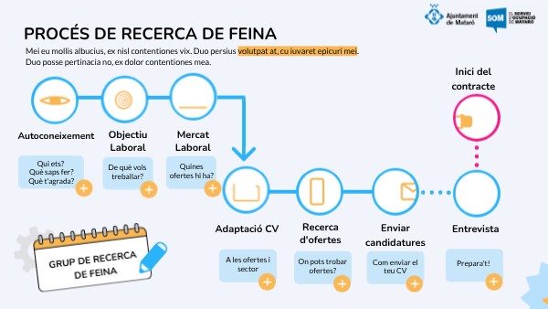 Activitats i tallers de millora del CV, entrevista, recerca de feina, xarxes, procés de selecció, competènices transversals...
